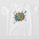 Celebrate your child’s big day in superhero style! 🦸♂️ This fun 10th birthday T-shirt features a bold comic book design with a cape-wearing hero silhouette bursting into action. The shirt can be personalized with your child’s name, making it a one-of-a-kind keepsake for their special day.