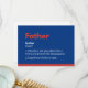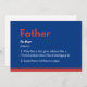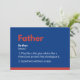 Superhero fathers day cards Superdad : This superhero fathers day card in red and blue has a definition of the noun "Father" (1.Play like a kid, give advice like a friend and protect like a bodyguard. 2.Superhero without a cape). This happy father's day card is unique and so thoughtful. Perfect to show your love and your gratitude on father's day. Any father will love this best dad card. :) Lucky you ! You have four colour choices for this fathers day card. Happy father's day !