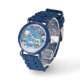 A group of superhero kids and animals in their costumes flying high on blue background.