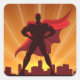 A super hero in his superhero costume standing in a pose. This design looks really effective on this Stickers