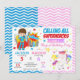 With colorful stars, soft watercolor accents, and a bright zigzag border, this invitation is perfect for a joint birthday party, boy & girl shared birthday, superhero and unicorn party, magical hero celebration, editable kids birthday invite, and two-theme birthday celebration.