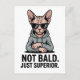 This modern cartoon-style illustration features a confident sphynx cat with soft pink skin, wearing a gray hoodie and bold sunglasses. The crossed-arm pose and calm expression create a cool, superior attitude, while the clean vector style and limited color palette give the artwork a sharp, minimalist feel. The phrase “Not Bald. Just Superior.” adds clever humor, making this design perfect for fans of sarcastic cat art, meme culture, and bold personality visuals.