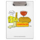 Supermarket Dairy Products Manager Funny Cheese Clipboard features a cartoon depicting a wedge of Swiss Cheese reacting to a package of smelly Limburger as a glass of wine and a loaf of French bread look on.,