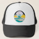 A beautiful landscape with unique textures showing a huge supermoon rising in a mountain landscape with rolling hills and trees in shades of blue, cyan, gold, and yellow.