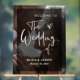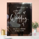 Ces mariage acrylique moderne et élégant signe d'accueil comprennent votre propre photo personnelle couvrant l'arrière - plan complètement. Une simple superposition noire contient une typographie de script à la mode blanche et un coeur dessiné à la main.