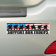 Show your support for the troops from the United States of America with this bumpersitcker. It has the American flag as the background, and the foreground is the silhouettes of different branches of the military.