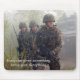 Photo of soldiers in the woods with vehicle in background. Says, "Everyone gives something, some give everything." in grey.
