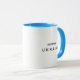 Support Ukraine with this blue & white coffee mug. Black text makes a statement by keeping it simple. Zelensky would be proud. Original Ken-Ray design.