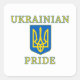 This sticker design features bold text that reads UKRAINIAN PRIDE and features the coat of arms shield of the Ukrainian national flag.