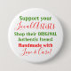 Support Your Local Artists Shop Their Original Authentic Items Handmade With Love And Care.  Wear on your shirt, jacket, purse or hat.  A statement 3" or larger round button pin for male or female to help show your support for local artists and the love of art, graphic artwork, photography, woodworking, needlepoint, etc.  Typography design in red and green text on a white background.  Original art and handmade items doesn't just happen, it takes commitment, and creativity to come up with new fresh ideas, and a love for what you do and a lot of time getting the details just right by the artist designer.  Original Text Saying Design © 2018 TamiraZDesigns.