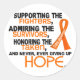 Support everyone battling Leukaemia, admire and celebrate each Leukaemia survivor, and honour and remember every person taken from us by Leukaemia with our Supporting Admiring Honouring inspirational t-shirts, apparel, gifts, and merchandise featuring grunge text, a bold layout, and a striking orange Leukaemia support ribbon. This popular design is ideal for advocating much-needed Leukaemia awareness while paying tribute to every hero who has fought, or is fighting, this unwelcome adversary.