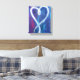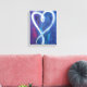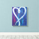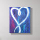 Art features a twisting white heart that pays tribute to awareness ribbons. Background colours are soothing purple and blue. A light layer of glitter was sprinkled into the paint. Customize this heart canvas print with your text or images to make it a personalized love heart gift art prints or posters for someone special!