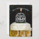 Bougie en pierre tombale noire dans une tasse de bière avec confettis colorés sur le noir pour la fête d'anniversaire sur la colline.