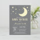 Sur l'Invitation du Baby shower de la Lune. Jaune et Gris. Pour plus de personnalisation, cliquez sur le bouton "Customiser" et utilisez notre outil de conception pour modifier ce modèle.
