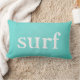 This beautiful turquoise pillow is the perfect accessory for a beach house. One side says "surf" and the other says "sand". Can't go wrong either way.