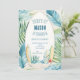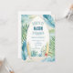 Surf Anniversaire Invitation en Bleu avec des feuilles tropicaux, de beaux motifs en aqua, bleu et beige, avec planches de surf. Parfait pour votre petit surfeur !