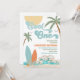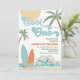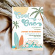 Celebrate your little ones big milestone with this fun surf and beach themed 1st birthday invitation. Featuring palm trees, ocean waves, surfboards, and a sunny tropical vibe, this cheerful design sets the perfect tone for a summer party. Personalize with your childs name, party details, and RSVP information to make it uniquely yours. Ideal for beach parties, surf birthdays, or tropical celebrations, this invitation will make guests excited to catch the wave and join the fun.