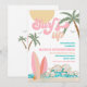 Make waves with this fun surf birthday party invitation, perfect for kids who love the beach and ocean vibes. Featuring palm trees, surfboards, waves, and a sunny coastal design, this invite sets the tone for a tropical celebration. Ideal for summer birthdays, pool parties, or surf-themed events, its customizable with your party details to create a unique keepsake. Guests will love the playful design and festive energy, making your celebration unforgettable.