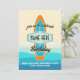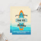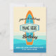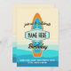 Surf board on beach birthday invitation