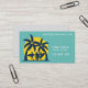 A business card for a surfing school or surfing teacher with a cool design of a sunset beach with palm trees and surfers. This beach, Summer inspired design is bright and vibrant and for lovers of surfing and the beach lifestyle all over the world. It is fully customisable to include your own details.