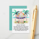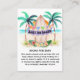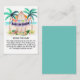 Beach theme baby shower "Books for Baby" enclosure card features a tropical paradise with sun, sea, palm trees and a surfboard adorned with a "Baby On Board" banner, festive string lights, hibiscus and palm leaves. The colours are gender neutral and perfect whether you are having a girl or boy little one, and the text can be personalized. Art by KL Stock