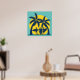Cute graphic of beach scene with palm trees, surfers and the sun. Perfect for a surf lover.