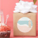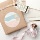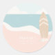 Surfboard Beach round sticker. Part of the Surfboard Beach baby shower collection.