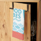 Ride the wave of good vibes with this customizable beach-themed kitchen towel. Featuring bold typography that reads “High Tides and Good Vibes,” a colourful surfboard, playful wave accents, and a burst of sunshine, this design captures the spirit of coastal living. Whether you’re decorating a beach house kitchen or looking for the perfect housewarming gift for a homeowner who loves surfing and catching ocean waves, this design will add a splash of personality to any space. Personalize the three text placeholders with your own phrase to create a unique seaside keepsake.