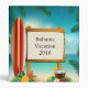 Sun, sandy beach, and a colourful surfboard are featured on this summer vacation personalized photo album. Image courtesy of freepics.