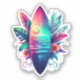 Introducing our Surfboard Tropical Beach Sticker: where vibrant design meets endless possibilities! Immerse yourself in the tranquil hues of dusk with this captivating sticker, featuring a colourful surfboard with a mesmerizing sunset, surrounded by tropical vibes.