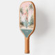 This pastel beachy pickleball design features a tropical flowered surfboard sticking up out of the sand against a tropical beach and pastel pink sky. This surfing inspired pickleball paddle would make a great gift for a beach lover or surfer, especially if they like the warm waters of tropical beaches or the scent of beautiful tropical flowers. Your or your recipient's monogram initials appears in light sandy cream colour against a teal-ish sage green background.