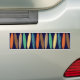 Striped surfboards bumper sticker. Background colour can be customized.
