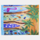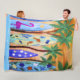 Surfboards coastal home throw blanket. Fun colorful surfboards on a fleece throw blanket.
