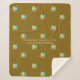 Beach-themed surfer's fleece blanket to personalize. A little pattern of three, illustrated surfboards covers this golden brown blanket. Customize text in the centre with a family name, or any text. Use to keep warm on windy days on the coast.