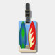 Luggage tag for a surfer with cool design of two brightly coloured surfboards standing on a beach. These surfboards are retro classic style and reminiscent of a bright Summer, sunny day at the beach. A great design for lovers of the beach and of surfing. Perfect for travelling with your surfboard !