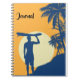 Surfer, palm tree, cliff, Sun, Moon, surfer. Beach scene with Surfer, bright orange, the sun or moon in tan and blue the dominant colours. The word JOURNAL is completely customizable and can be changed to anything you'd like or eliminated together. Makes a perfect notebook for just about anyone. Great for a Christmas gift or any time of the year. ENJOY! Dimensions: 6.5" x 8.75" -- 80 black & white lined pages. Lay flat spiral binding.