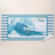 Cette serviette de plage représente un surfeur surfant sur une grande vague et vous pouvez personnaliser la serviette avec un nom ou un autre texte avant de l'ajouter à votre panier.