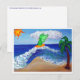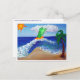 (The painting is of a green angel on an orange surfboard catching a wave. A sun glows in the background and palm tree gently sways on the beach. The wave is getting ready to crash on the beach smoothing the sandy surface. The green angel pays tribute to the Archangel Raphael whose colour is green and is known for bringing healing. The sun helps sustain life and through it plants such as palm trees strengthen and grow. The power of sun's energy is symbolized in the matched orange- yellow surfboard. The beach is clean and smooth. This painting was inspired by the "Wipe Out Cancer Angel". Instead of adding text of this painting, it was left open so you can your own wipe out, riding the wave, or other go with flow message to the beach, cloud, or sky.