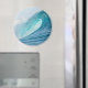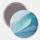 Round magnet with a great surfing barrel wave breaking into a big splash and turquoise colours in the best place to surf, the Pacific Ocean.