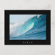 Postcard of a great surfing barrel wave breaking into a big splash and turquoise colours in the best place to surf, the Pacific Ocean with a black border and the text: 'Hawaii'.