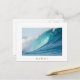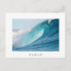 Postcard of a great surfing barrel wave breaking into a big splash and turquoise colours in the best place to surf, the Pacific Ocean with a white border and the text: 'Hawaii'.