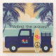 Coaster with image of seventies truck, surfboard and peace sign. Riding the Waves!