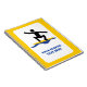 Surfing gifts, surfer on his surfboard custom gift design featuring a minimalist black icon of a surfer standing up on his yellow surfboard over a blue wave and a yellow border around. This cool design is a template and it is completely customizable. Personalize it and change text with monogram, name or your message. The perfect gift ideas for the surfer. See lots of designs at our Sports Gifts store.