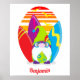 Cartoon surfing gnome poster. This cute whimsy gnome is wearing sunglasses, and is standing beside his surfboards. Perfect for kids bedrooms and children's nurseries. Add your own name to customise.