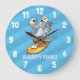 Surfing Polar Bear Funny Party Time! Cartoon Large Clock