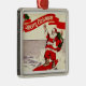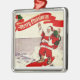 This snazzy Christmas ornament features a vintage illustration of Santa Claus on a surfboard. The perfect fun ornament for fans of Santa and all things retro!