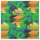 Hawaiian pattern of a surfer silhouette in front of a tropical sunset.