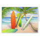 Colourful surfboards sitting on the shore and among the palms, patiently awaiting their "Big Kahunas!" :: Original Watercolor by Barbara Bayer
