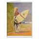 Rumour has it that the surfing is great. A blonde headed young man, with his surfboard and wetsuit at the ready, rushes to the beach. Near Isla Vista, California