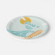 Surfs UP! Surfing Beach Birthday party plates with turquoise waves and orange surf board.